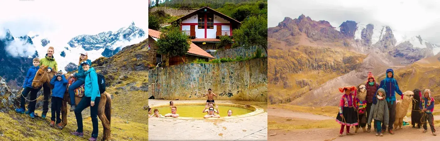 Early in the morning we will pick you up from your hotel lobby in Cusco at 05:30 am and travel for 1 hour towards the Sacred Valley we will stop at the lookout to take panoramic photos of the Valley and the tour guide will give you a brief explanation of the place, then continue to the village of Calca, where we will make a short stop and a visit to the local market where typical local products are sold, then we will transport you for about 2 hours to the village of Lares (3,100 mals / 10,170 feet) in this place we will welcome our road team (chef, carrier) before the walk we will have the opportunity to go to the medicinal thermal baths of Lares (3,250 mals / 10,662 feet) and enjoy a relaxing bath, the temperature varies between 28 Celsius degrees to 34 Celsius degrees. Then we will begin our adventure, walking Andean flat terrain for about 2 hours for better acclimatization to the bridge of Vilcabamba where our team awaits us with lunch, after lunch we will enjoy a short break and continue for 3 hours to the village of Wacahuasi (3,750 mals / 12,303 feet) during the trek find children from nearby villages using their traditional costumes to welcome us is a great opportunity to support and share good times with them. Wacahuasi is the place of our first day of camp, this camp the night will be colder recommend wearing warm clothes for the night, then we will have tea time ideal for sharing experiences in the day time. Later we will enjoy dinner and finally the night.