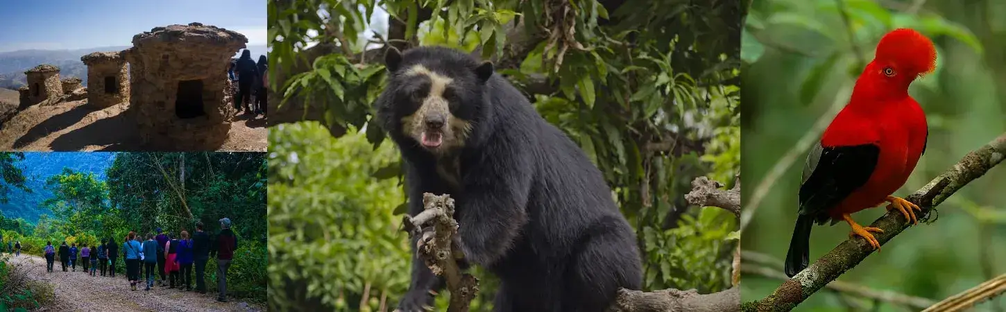 We will leave Cusco early in our comfortable bus until we reach the folk village of Paucartambo, then we will visit the pre-Inca funerary towers of Ninamarca, then we will drive through a cloud forest full of plants and beautiful orchids, we will have the opportunity to observe the national bird of the Peru: Gallito de las Rocas (Rupicola Peruviana), monkeys, many birds and other species and with a little luck, we will see the only South American bear, the spectacled bear (Tremarctos Ornatus). In the afternoon we arrive at Pilcopata, where we will spend the night at the Lodge there will be showers and private bathrooms to cool off.