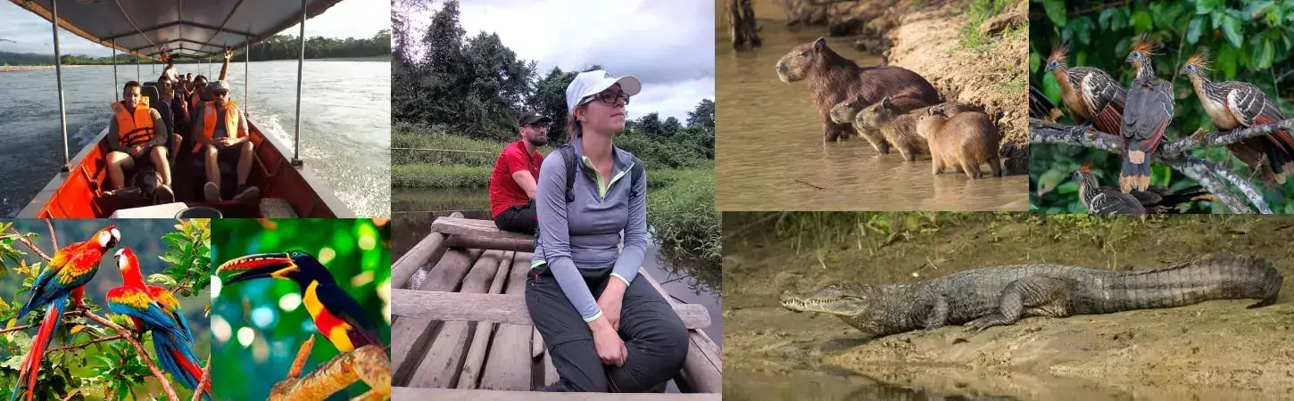 After our breakfast, we will continue our trip on the private bus until we reach Atalaya, during this trip we will see coca plantations and stop at a point where we can observe the entire jungle and the Madre de Dios river, then we will cross the river on board A motorized boat until we reach our lodge, in this part we can see the first birds and flowers. In the afternoon we will go to Machuwasi Lake where we will sail in a native raft to the place where the Capybaras (the largest rodents in the world) live, and we can also observe the prehistoric Birds, after the beautiful sunset, we will go in search of the alligators, finally we will return to our rustic Soga de Oro Lodge to rest.