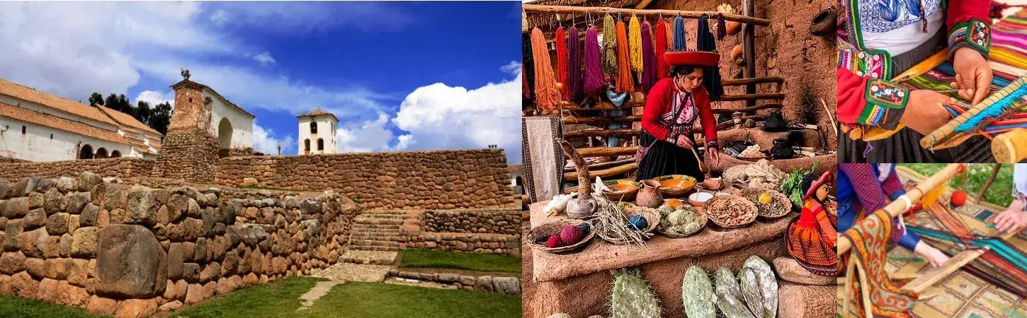 Our journey begins 28 km from Cusco. Explore the Royal Hacienda of Tupac Inca Yupanqui and a stunning colonial temple built upon Inca foundations. Immerse yourself in the artisan market, a spectacle of color where you can find textiles made in the purest pre-Columbian style.